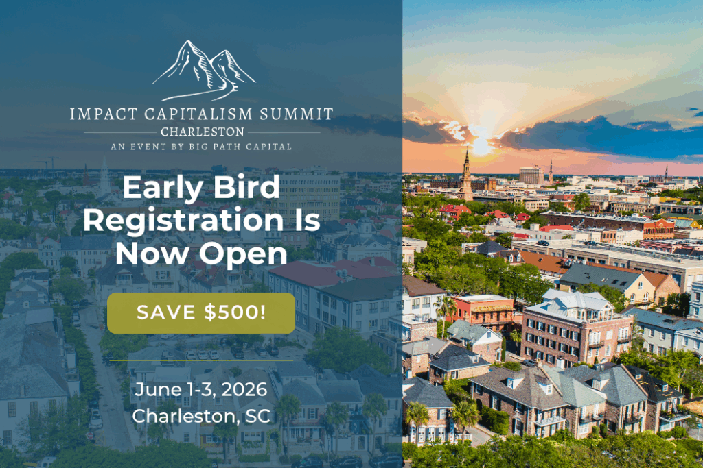 We’re thrilled to announce the 2026 Impact Capitalism Summit, taking place in Charleston, SC, from June 1-3, 2026! For over a decade, this special event has served as the premier convening for top investors and fund managers who are shaping the future of impact investing. We’re gathering at a critical inflection point for our industry, just ahead of midterm elections that will define the policy landscape for years to come. Register today at the Early Bird price, and help us ensure that impact investing in private markets continues to thrive. Learn more.